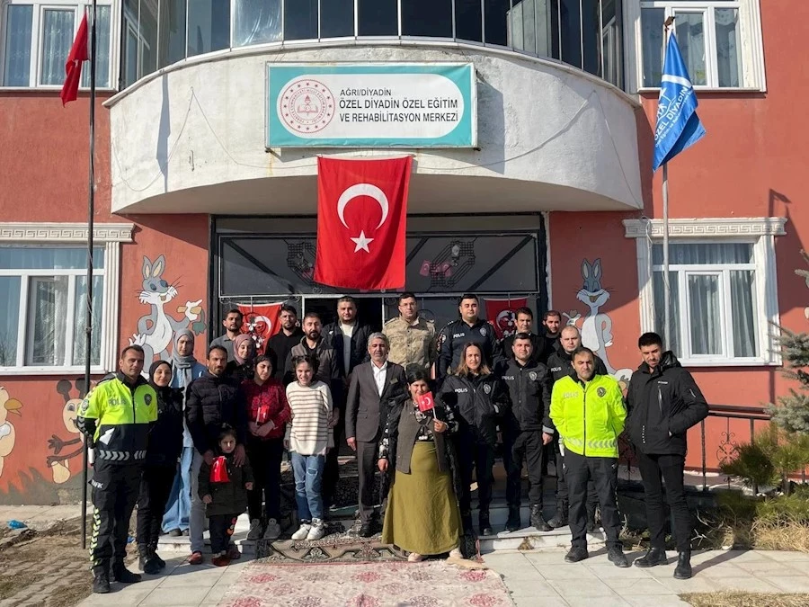 Azmi Bertan; 3 Aralık Dünya Engelliler Günü münasebetiyle; özel gereksinimli çocuklarımız için daha fazla farkındalık geliştirmeye ve sorumluluk almaya vesile olmak amacıyla kurumumuz öğrencilerini ziyarete gelip çeşitli ikramlar ve hediyeler ile öğrencilerimizin yüzlerinde tebessüme sebep olan Diyadin İlçe Emniyet Amiri Sn. Oğuz Kaan ÇAMBEL , İlçe Jandarma Komutanı Binbaşı Sn.Tolga Seçkin ZAFER , Ak Parti İlçe Başkanı Sn.Naci KAYA ve Diyadin İlçe Emniyet Amirliği Trafik Tescil ve Denetleme Büro Amirliğine bu kıymetli ziyaretlerinden dolayı teşekkürlerimizi ve saygılarımızı sunuyoruz.