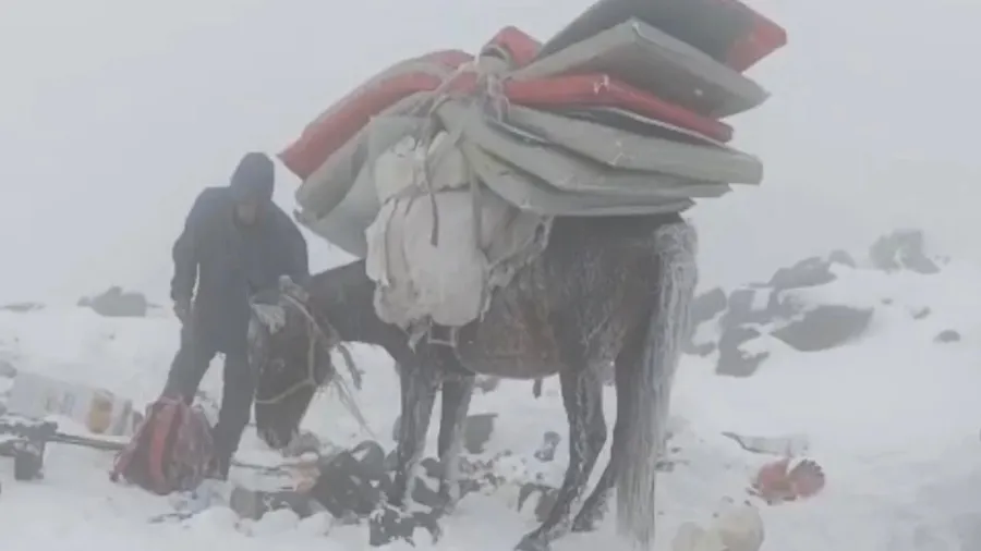 Özellikle kamp alanlarında atlarıyla birlikte bulunan bazı dağcı grupları, hem kendilerini hem de hayvanlarını korumak için çadırların çevresine kar setleri kurdu.