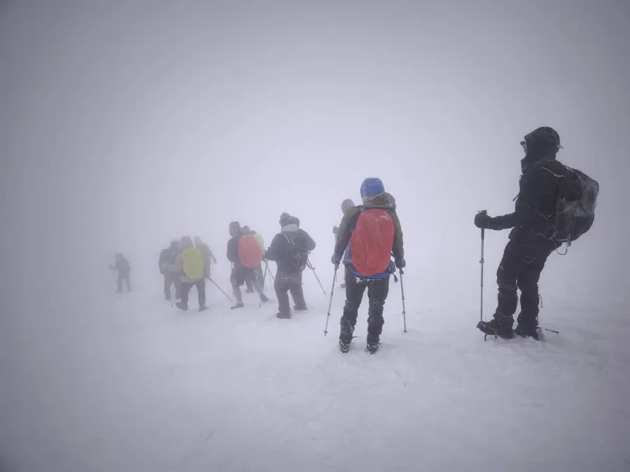 Sezonun son tırmanışını yapmak için bölgeye gelen dağcılar, zirveye doğru ilerledikleri sırada kar fırtınasına yakalandı.
