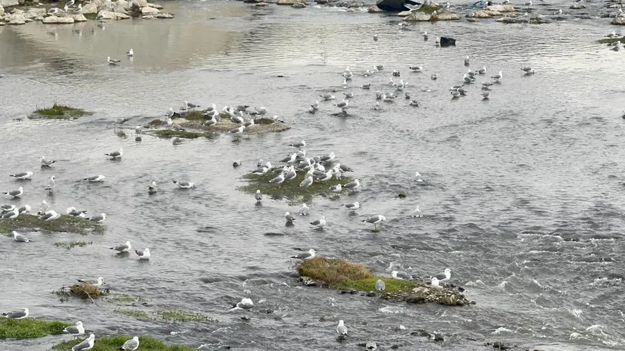 Beyaz ve gri tonlardaki martıların, nehir boyunca sıralanan küçük yeşil adacıklar üzerindeki görüntüsü adeta doğanın sunduğu bir tabloyu andırdı.