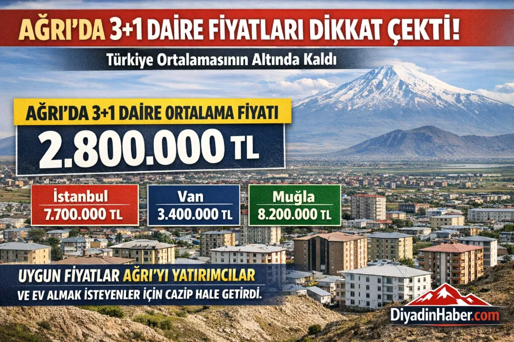 AĞRI HaberleriAğrı’da 3+1 Daire Fiyatları Dikkat Çekti: Türkiye Ortalamasının Altında Kaldı.