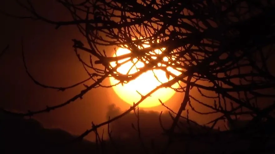 Ağrı’da gün batımı sırasında güneşin ağaç dallarının arasından süzülen ışıkları, görenleri büyüledi. Kışın soğuk havasına rağmen, batmaya hazırlanan güneşin oluşturduğu bu manzara, doğa severler ve fotoğraf tutkunları için harika bir görüntü sundu.