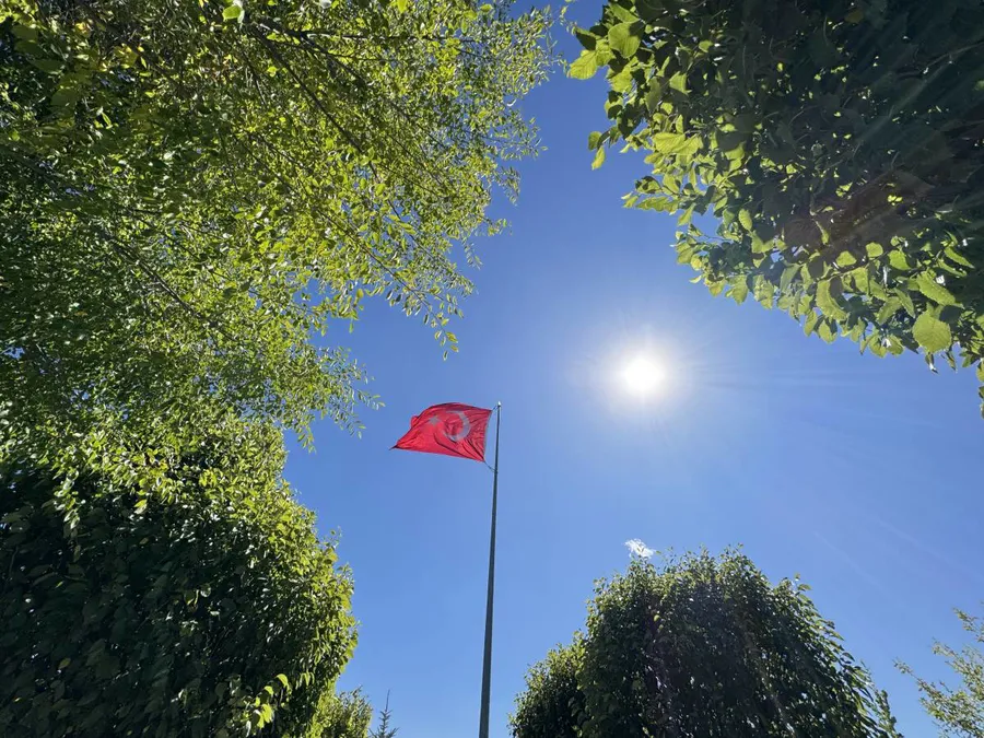 Ağrı’da sabahın erken saatlerinde doğan güneş ile birlikte dalgalanan Türk bayrağı ortaya adeta kartpostallık görüntüler çıkardı. Güneşin kızıllığıyla bütünleşen bayrak manzarası görenleri mest etti.