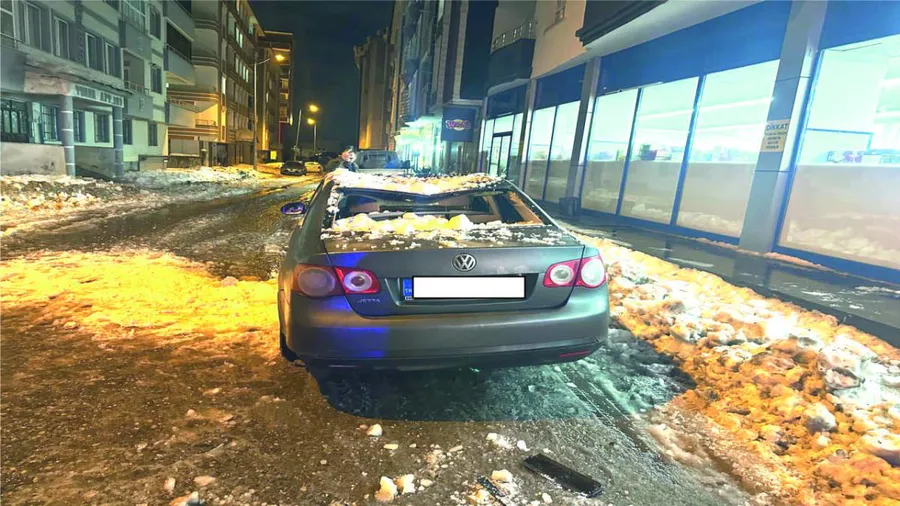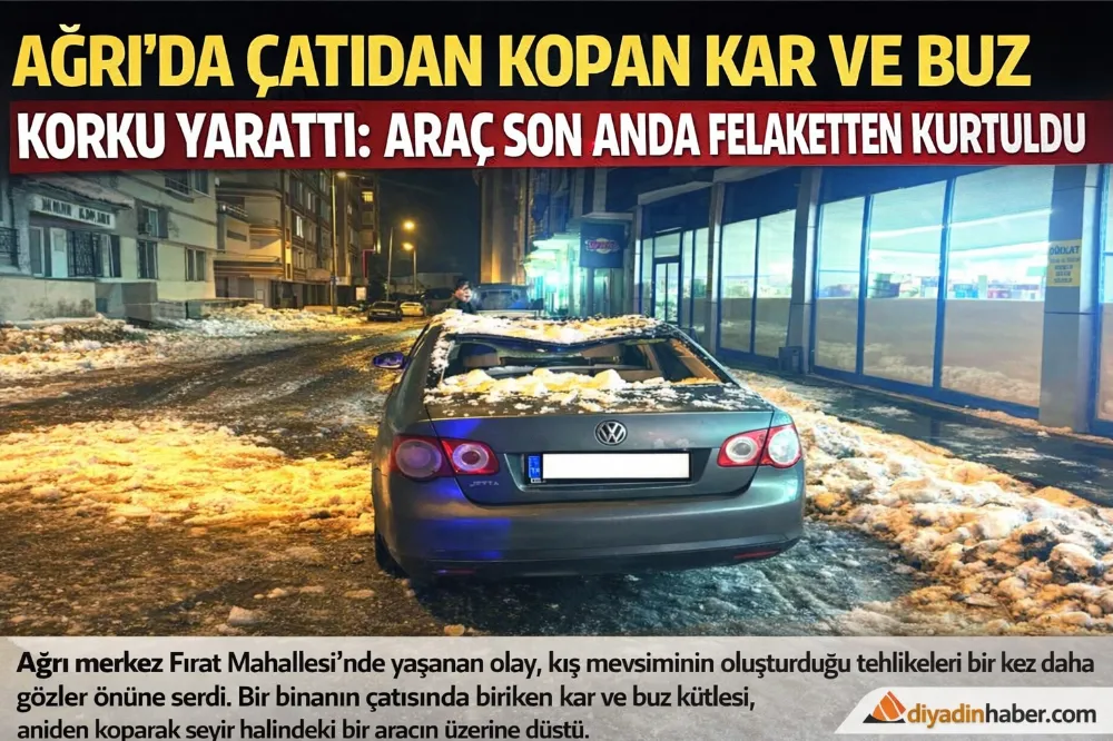 Ağrı’da Çatıdan Kopan Kar ve Buz Korku Yarattı: Araç Son Anda Felaketten Kurtuldu.