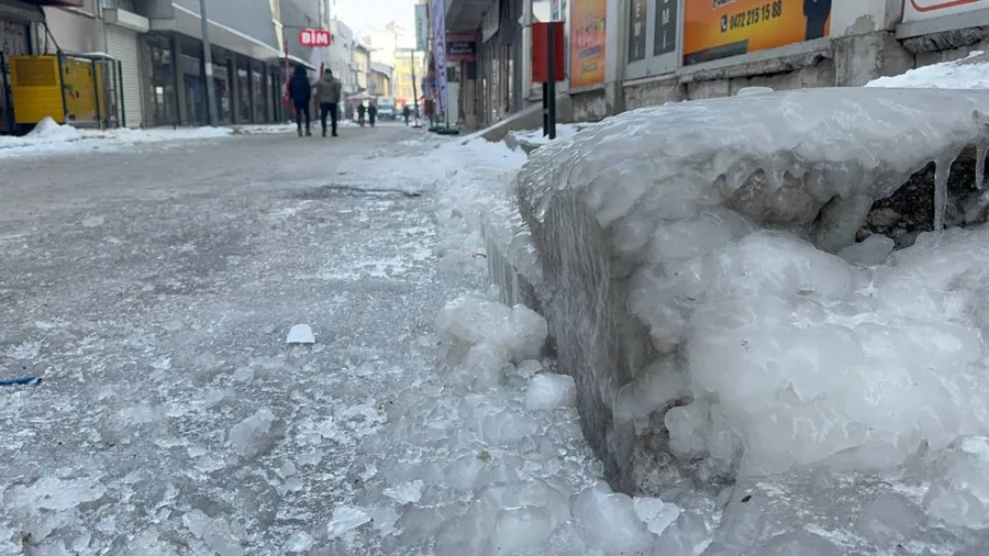 Gece boyunca etkisini artıran soğuk hava dalgası, sabah saatlerinde kent merkezinde buz manzaraları oluşturdu. Cadde ve sokaklarda oluşan su birikintileri donarak kaygan zeminlere dönüşürken, park halindeki araçların camları buz tuttu.