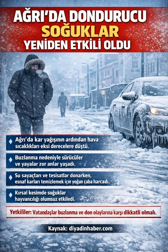 Ağrı’da Dondurucu Soğuklar Yeniden Etkili Oldu.
