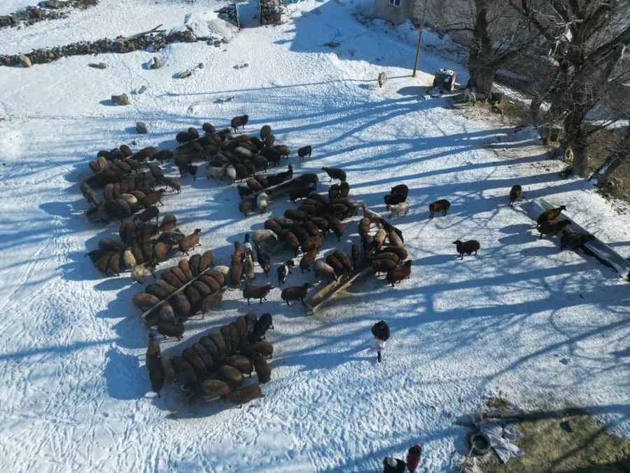 Soğuk havaya rağmen açık alanlarda yemlenen küçükbaş hayvanlar da bu kış tablosuna ayrı bir canlılık kattı.