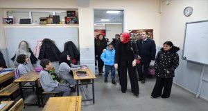 İlhan kardeşleri Cemil Meriç Ortaokuluna getiren Koç, kardeşleri kendi eliyle eğitim hayatlarına tekrar devam edecekleri sınıfa yerleştirdi.