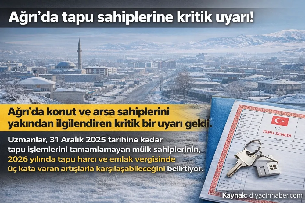Bu durum tapu devrini henüz yapmamış olanlar, satış işlemini erteleyenler, Ağrı’da yeni ev veya arsa almayı planlayanlar için önemli bir mali risk anlamına geliyor.