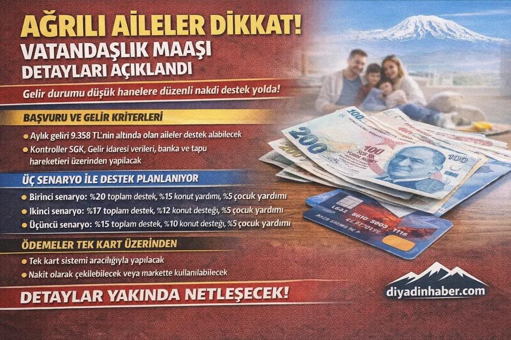 Programa göre, hane halkı aylık geliri net asgari ücretin üçte birinden az olan aileler bu destekten yararlanabilecek. Mevcut asgari ücret baz alındığında, aylık geliri 9.358 TL’nin altında olan Ağrılı aileler program kapsamına girebilecek.