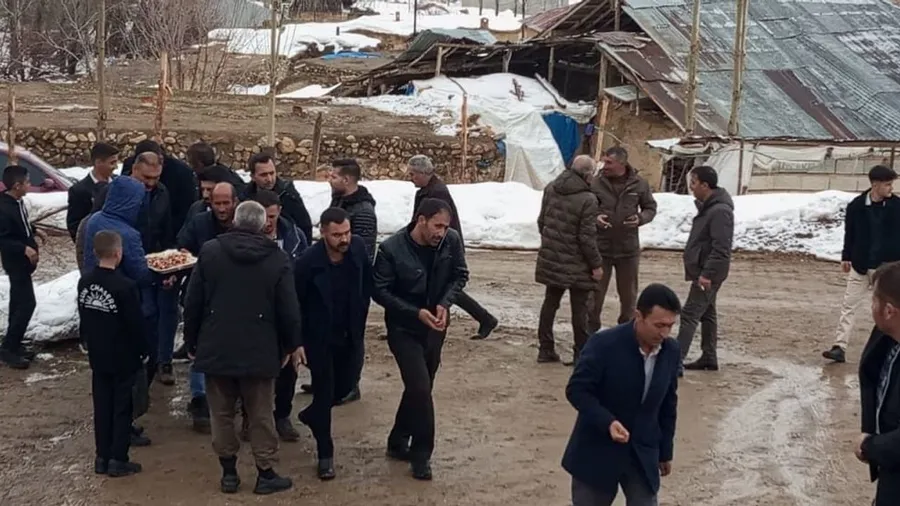 Kar yağışı ve soğuk havaya rağmen köylüler, mezarlık ziyaretinin ardından toplu şekilde tek tek evleri dolaşarak güzel görüntüler oluşturdu.