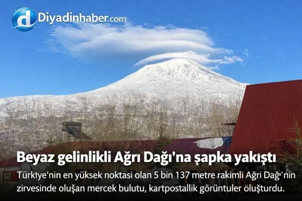 Zirvede oluşan ve halk arasında bin 137 metre rakımlı Ağrı Dağı,bu kez zirvesine taktığı “şapkasıyla” kendine hayran bıraktı. Zirvede oluşan ve halk arasında “şapka bulutu” olarak bilinen mercek bulutu, dağın karla kaplı doruğunu tamamen sararak kartpostalları aratmayan görüntüler oluşturdu.