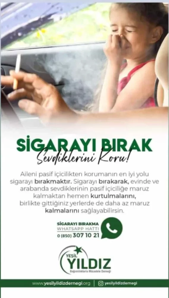 ELÇİ, Dünyada her yıl 8 milyon can kaybına yol açan sigara bağımlılığının Türkiye’deki sonuçları, her yıl 100 bin canın hayatını kaybetmesi olarak kayda geçtiğini belirterek, “Önemli bir halk sağlığı sorunu olan sigara kullanımı aynı zamanda birey ve ülke ekonomisini olumsuz yönde etkileyen bir alışkanlıktır. 31 Mayıs Dünya Sigarasız Günü için yapılan etkinliklerin amacı, sigaranın zararları konusunda duyarlılığı arttırmak ve toplumsal farkındalık oluşturmaktır. Tütün endüstrisinin bilhassa gençlere yönelik politikalarını engellemek, toplumu endüstrinin kirli oyunlarından uzak tutmak elimizdedir. Yeşilay olarak, toplumu tehdit eden bu büyük felakete karşı uygulanan ve uygulanacak olan güçlü ve kararlı politikaları sonuna kadar destekliyoruz. Gelin kendinize bir iyilik yapın ve sigarayı bırakın. Aynı zamanda bu iyiliği çocuklarınıza ve çevrenizdeki sevdiklerinize de yaptığınızı unutmayın” dedi.