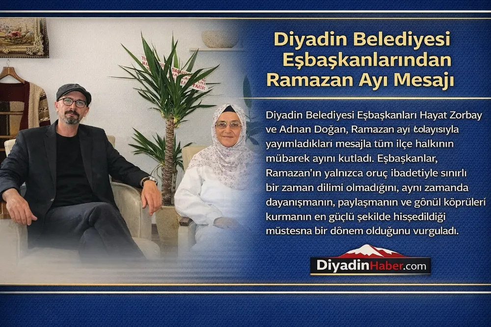 Zorbay ve Doğan, tüm Diyadinli hemşehrilerin Ramazan ayını tebrik ederek, “Birlik ve beraberlik içerisinde, aynı sofranın etrafında buluştuğumuz; sevgi, saygı ve hoşgörünün hâkim olduğu bir Ramazan geçirmenizi temenni ediyoruz. Tüm hemşerilerimizin Ramazan ayı mübarek olsun” sözleriyle mesajlarını tamamladı.