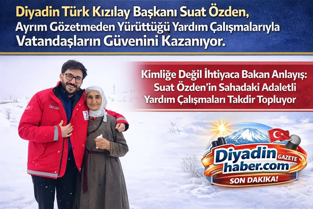 Diyadin Türk Kızılay Başkanı Suat Özden’in, hiçbir insanı ayırmaksızın, kimliğine, görüşüne ya da sosyal durumuna bakmadan herkesi bağrına bastığı; yardımların ulaştırılmasında adalet ve insan onurunu esas aldığı belirtiliyor. Vatandaşlar, Suat Özden'in sahada aktif olması ve birebir ihtiyaç sahipleriyle ilgilenmesinin Kızılay’a olan güveni artırdığını vurguluyor.