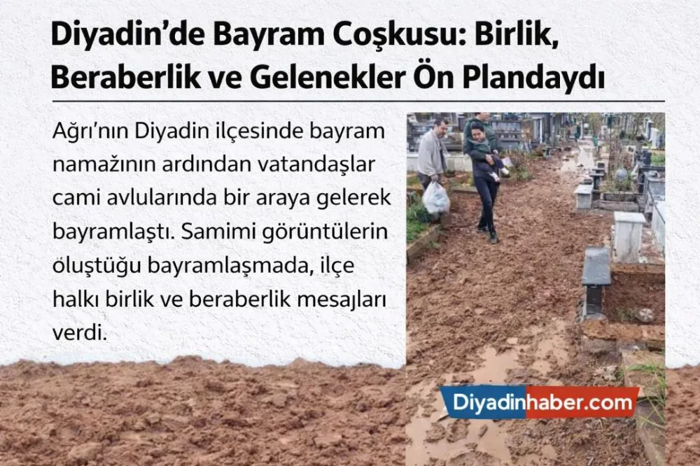 Namaz sonrası gerçekleştirilen bayramlaşmanın ardından Diyadinli vatandaşlar, mezarlıklara akın etti. Vefat eden yakınlarının kabirlerini ziyaret eden vatandaşlar, dualar ederek geçmişlerini unutmadıklarını bir kez daha gösterdi. Mezarlıklarda zaman zaman duygusal anlar yaşanırken, ziyaretler bayramın manevi yönünü ön plana çıkardı.