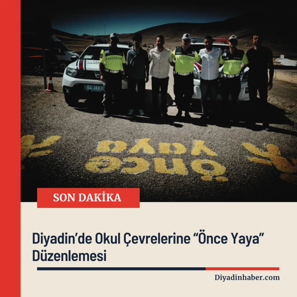Diyadin Kaymakamı Furkan Korkusuz’un öncülüğünde; İlçe Emniyet Amirliği Trafik Ekipleri ve İlçe Jandarma Komutanlığı Trafik Jandarması tarafından merkez ve köy okulları çevresinde “Önce Yaya” görselleri ve yaya geçitleri yapıldı.