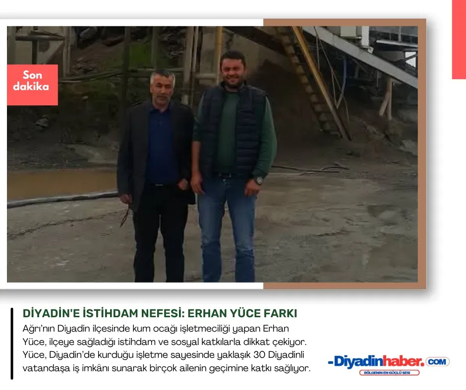 Diyadin’de üretime, istihdama ve ilçe halkına katkı sunan Erhan Yüce, çalışmalarıyla yerel kalkınmanın önemini bir kez daha gözler önüne seriyor.