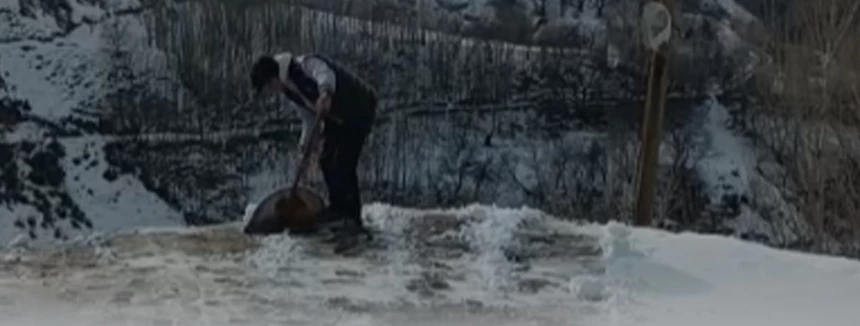 Ağrı-Diyadin ilçesine bağlı Yukarı Akpazar köyünde günlerdir etkili olan kar yağışının ardından vatandaşlar çatısız evlerin ve ahırların üzerinde biriken karı temizlemek için çalışma başlattı.