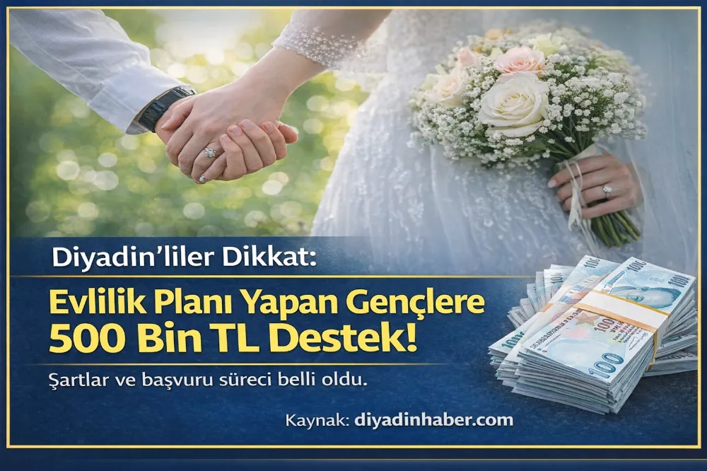 Diyadin'liler Dikkat: Evlilik Planı Yapan Gençlere 500 Bin TL Destek! Türkiye Diyanet Vakfı (TDV), evlenmek isteyen yetim, öksüz ve ihtiyaç sahibi gençlere maddi destek sağlayacak.