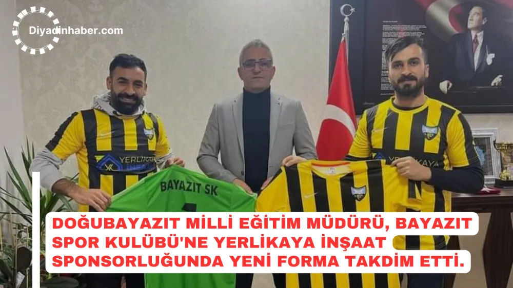 Doğubayazıt İlçe Milli Eğitim Müdürü Davut Şen, sporun önemine vurgu yaparak, Bayazıt Spor Kulübü’nün öğretmen ve gençlerden oluşan takımına destek sağlamak amacıyla Muğla Yerlikaya İnşaat’ın sponsorluğunda özel olarak tasarlanan formaları teslim etti. Şen, sporun gençlerin gelişimine katkı sağlamak adına bu tür desteklerin önemine değindi.