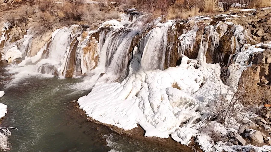 Özellikle sabahın erken saatlerinde etkisini artıran ayaz, şelalenin çevresinde kalın buz tabakalarının oluşmasına neden oldu. Suyun akmaya devam eden bölümleri ile donan kısımlarının yan yana oluşturduğu görüntü, doğanın gücünü ve estetiğini bir arada gözler önüne serdi.