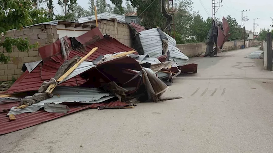 Elektrik tellerinin de zarar gördüğü olayda, çatıların uçma anı vatandaşlar tarafından cep telefonlara kaydedildi.