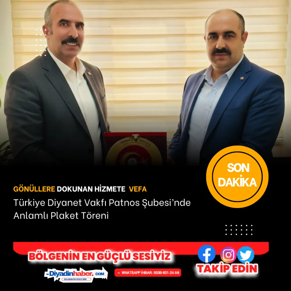 Toplumsal dayanışmanın en güçlü temsilcilerinden biri olan Türkiye Diyanet Vakfı Patnos Şubesi, anlamlı bir vefa programına ev sahipliği yaptı. Vakıf hizmetlerine sunduğu kıymetli katkılar dolayısıyla Patnos Şube Sorumlusu Hüsamettin Atmaca’ya teşekkür plaketi takdim edildi.
