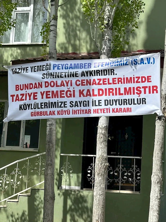 Gürbulak Köyü İhtiyar Heyeti'nin aldığı kararla birlikte, köydeki taziye süreçleri daha sade bir şekilde gerçekleşecek. Heyet, taziye yemeği geleneğinin Peygamber Efendimiz'in sünnetine aykırı olduğu düşüncesiyle bu kararı aldıklarını açıkladı.