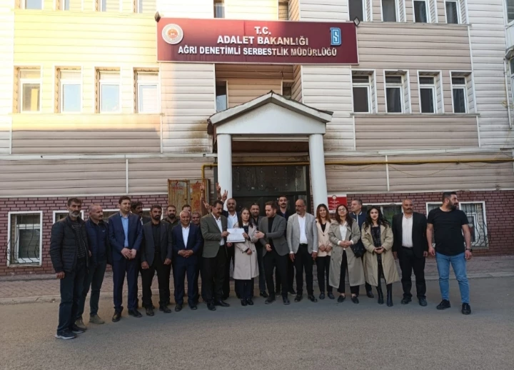Aras’a mazbata teslim töreninde eş başkan Mehmet Akkuş, DEM Parti Ağrı İl Başkanı Umut Doğruer ve partililer eşlik etti.