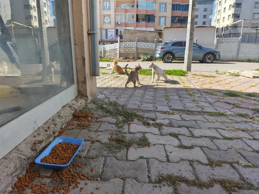 Soğuk kış günleri öncesinde yiyecek bulmakta zorlanan sevimli dostlar için bina önleri ve kaldırım kenarlarına su ve mama kapları bırakıldı.