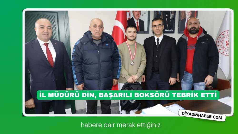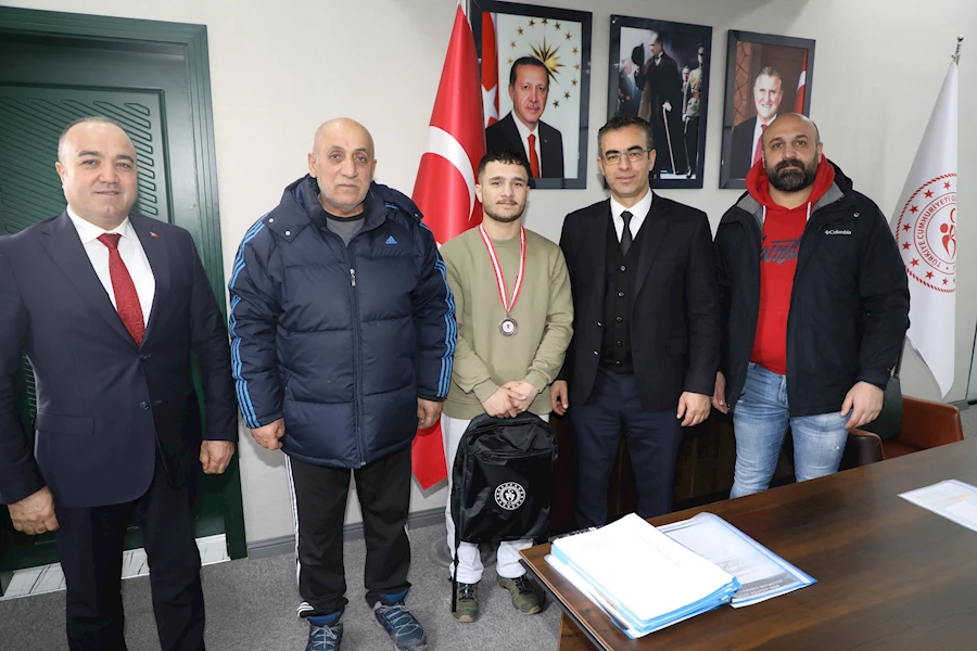 Gençlik ve Spor İl Müdürü Fedai Din, 17-23 Aralık 2023 tarihleri arasında Samsun'da düzenlenen Mustafa Bilir Büyük Erkekler Türkiye Ferdi Boks Şampiyonasında 60 kiloda Türkiye üçüncüsü olan Ağrılı boksör Sezgin Acar’ı antrenörü Volkan Sarı’yı makamında ağırlayarak başarısından dolayı tebrik etti.