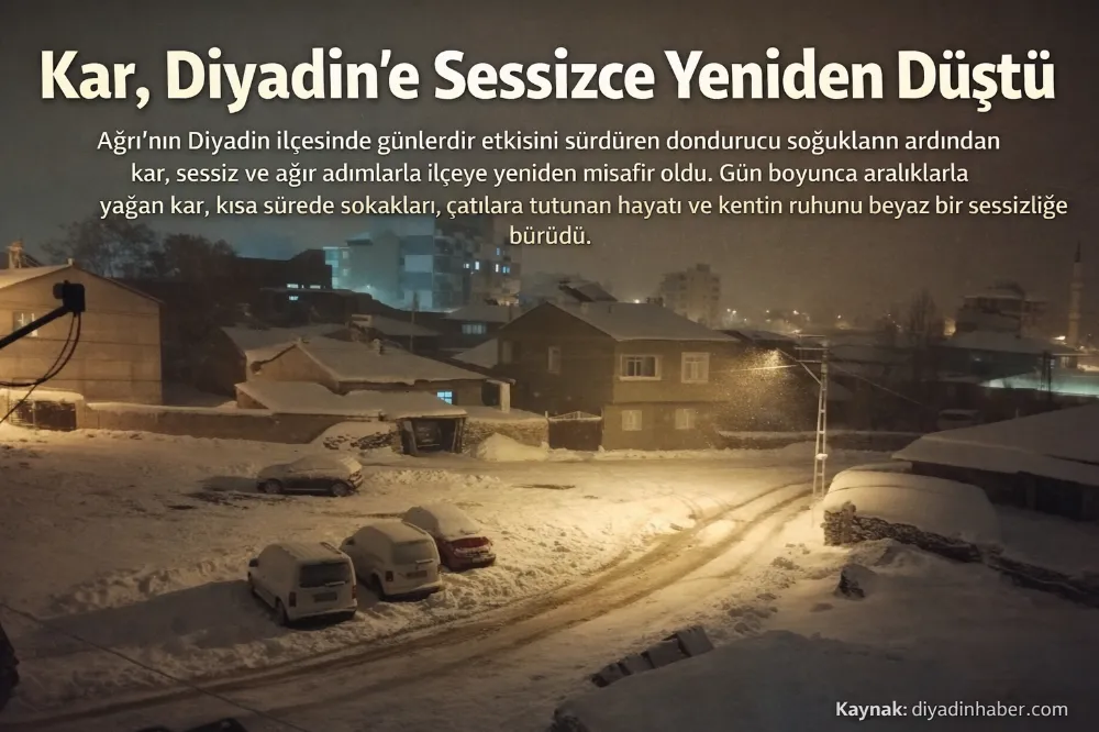 Ağrı’nın Diyadin ilçesinde günlerdir etkisini sürdüren dondurucu soğukların ardından kar, sessiz ve ağır adımlarla ilçeye yeniden misafir oldu.