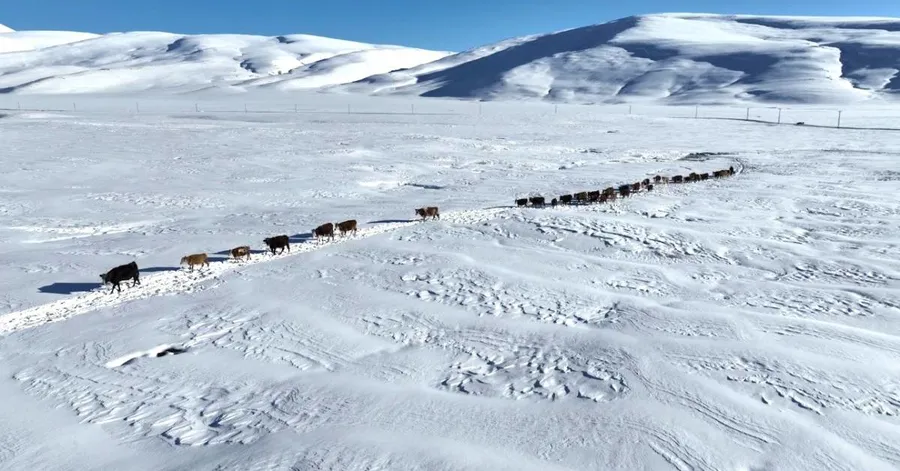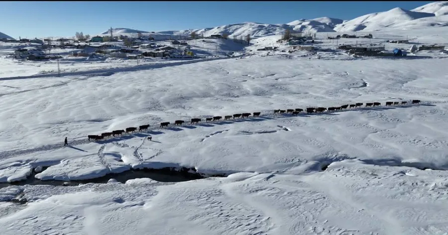 Hava sıcaklığının sıfırın altına düştüğü, kar kalınlığının bazı noktalarda 2 metreyi aştığı köyde, besiciler her gün zorlu bir yolculuğa çıkıyor. Karla kaplanan patikaları aşan köylüler, büyükbaş hayvanlarının su ihtiyacını karşılamak için Menderesler bölgesine kadar ilerlemek zorunda kalıyor.