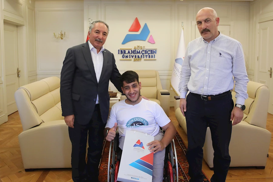 Ağrı İbrahim Çeçen Üniversitesi (AİÇÜ) Rektörü Prof. Dr. Abdulhalik Karabulut, 29-31 Temmuz 2024 tarihlerinde Trabzon'da düzenlenen Para Yüzme ve DEAF Yüzme Kulüplerarası Türkiye Şampiyonası’nda farklı kategorilerde 3.'lük madalyası alarak büyük bir başarıya imza atan Yusuf İncekaya ve Taha Burak Duzlu ile antrenörleri Doç. Dr. Baykal Karataş’ı misafir etti.