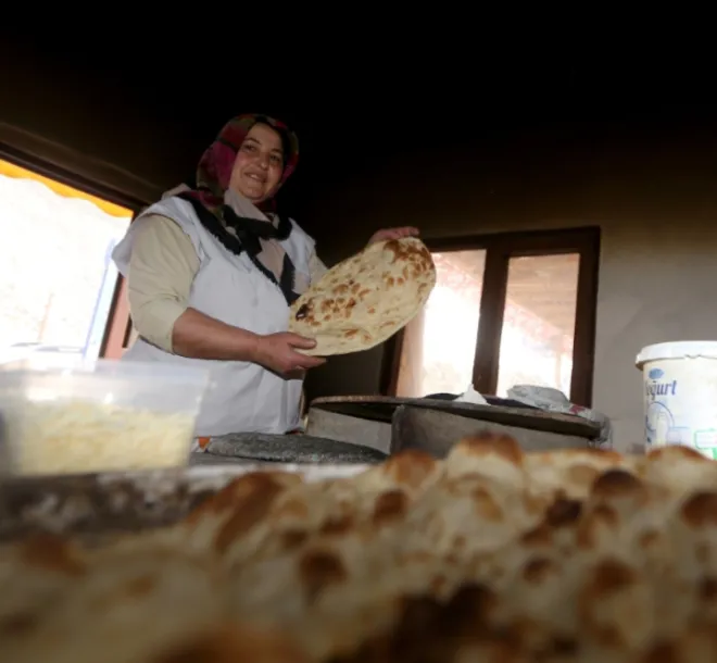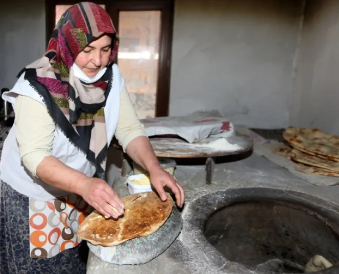 İlçede yaşayan kadınlar, mübarek ay öncesinde ve Ramazan boyunca tandır başında bir araya gelerek imece usulü ekmek pişiriyor. Toprak tandırlarda hazırlanan bu özel ekmekler ise günlerce tazeliğini koruyor.