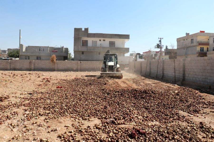 Belediyeden yapılan açıklamaya göre, halk sağlığının korunmasına yönelik çalışma yürüten Zabıta Müdürlüğü ekipleri, boş bir arsada çürümüş soğanların serildiğini fark etti.