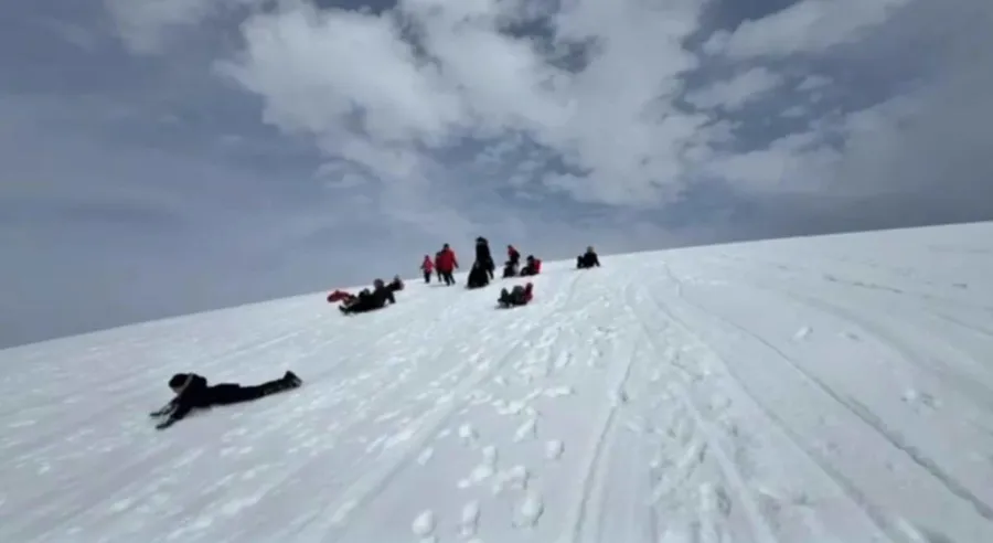 Profesyonel kayak takımlarının, telesiyejlerin ya da kayak merkezlerinin olmadığı köyde, öğrenciler kendi imkânlarıyla kurdukları “doğal pistte” unutulmaz bir gün yaşadı.