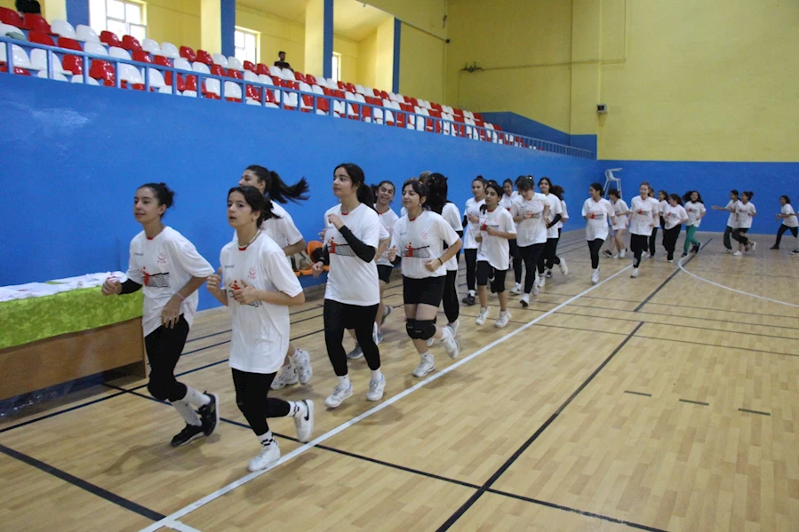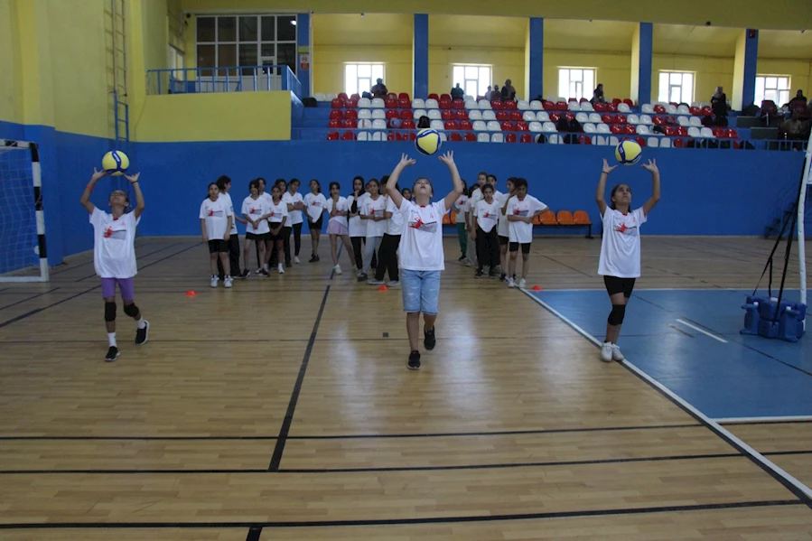 Türkiye Voleybol Federasyonu tarafından gönderilen tshirt, file, top gibi malzemelerin dağıtıldığı törende, çocuklar voleybol dolu bir gün yaşadılar.