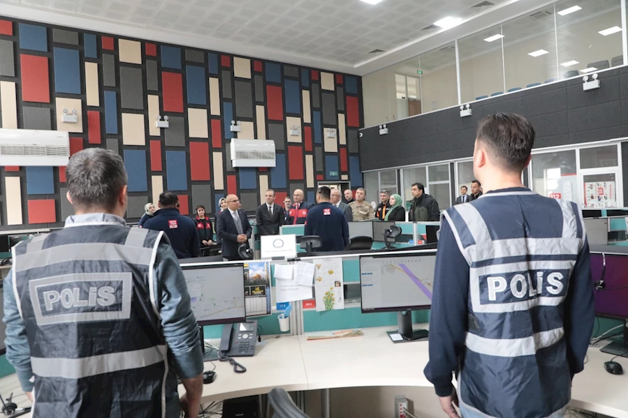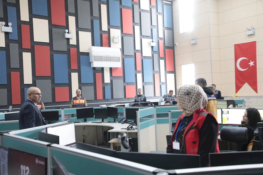 Ağrı Valisi Mustafa Koç, 112 Acil Çağrı Merkezini ziyaret ederek incelemelerde bulundu.