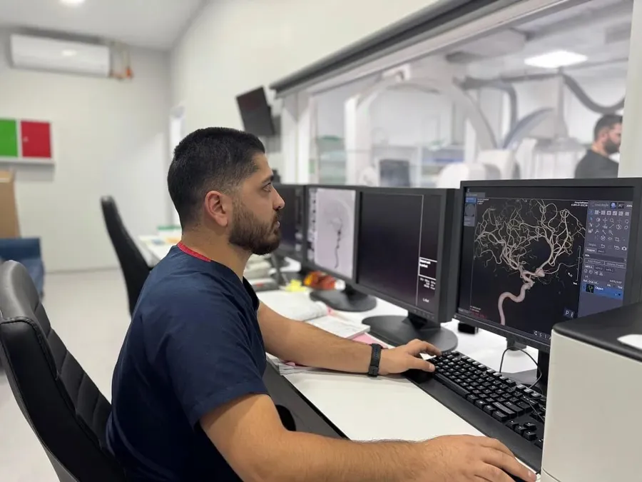Anevrizma tedavisinde iki farklı yöntemin kullanıldığını vurgulayan Girişimsel Radyoloji Uzmanı Dr. Berat Demiral ise "Yapılan tomografi incelemesinde beyin kanaması tespit ediliyor. Ardından çekilen tomografik anjiyoda beyin damarlarında anevrizma (damar baloncuğu) tespit ediliyor. Bunun üzerine hasta, tedavi amacıyla 112 ambulansı ile Van Eğitim ve Araştırma Hastanesi'ne sevk ediliyor. Hastaya ilk olarak anjiyo işlemi yapıldı. Kasıktan girilerek beyin damarlarına özel kateterlerle ulaşıldı ve anevrizmanın endovasküler (kapalı yöntem) tedaviye uygun olduğuna karar verildi. Yaklaşık 1,5 saat süren işlemde, anevrizmanın ağzına mikrokateterle ulaşılarak içine platin teller (coil) yerleştirildi. Bu yöntemle baloncuğun kanla dolması engellendi ve yeniden kanama ihtimali ortadan kaldırıldı. Anevrizma tedavisinde iki farklı yöntem bulunuyor. İlki bizim uyguladığımız kapalı yöntemdir. Bu yöntemde kasıktan girilerek beyin damarına ulaşılır, baloncuk platin telle kapatılır. İkincisi ise açık beyin ameliyatıdır. Bu yöntemde kafatası açılarak anevrizmanın boynuna klips adı verilen özel bir kıskaç yerleştirilir ve baloncuğun kanla dolması önlenir. Her iki yöntemde de amaç aynıdır; baloncuğu devre dışı bırakmak. Ancak kapalı yöntem, hasta açısından daha konforludur. Açık yara olmadığından komplikasyon riski daha düşüktür ve hastanede kalış süresi daha kısa olup hastalar daha kısa sürede günlük aktivitelerine dönebilmektedir. Hastamızı bir hafta önce işlem için almıştık. Şu anda durumu gayet iyi olup takibi ve ilaç tedavisi devam etmektedir." şeklinde konuştu.