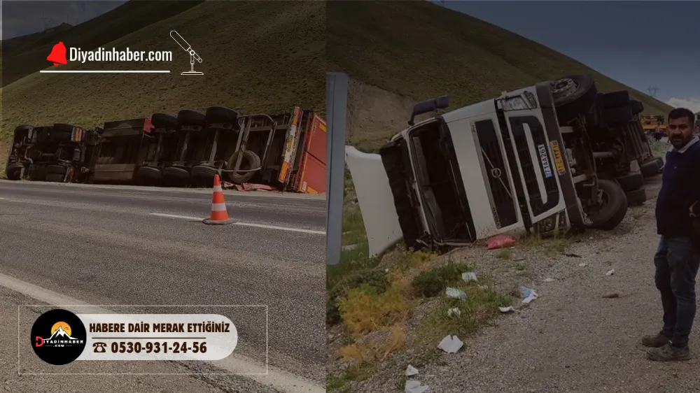Sürücüsünün ismi öğrenilemeyen İran plakalı bir tır, bilinmeyen bir sebepten dolayı devrildi.