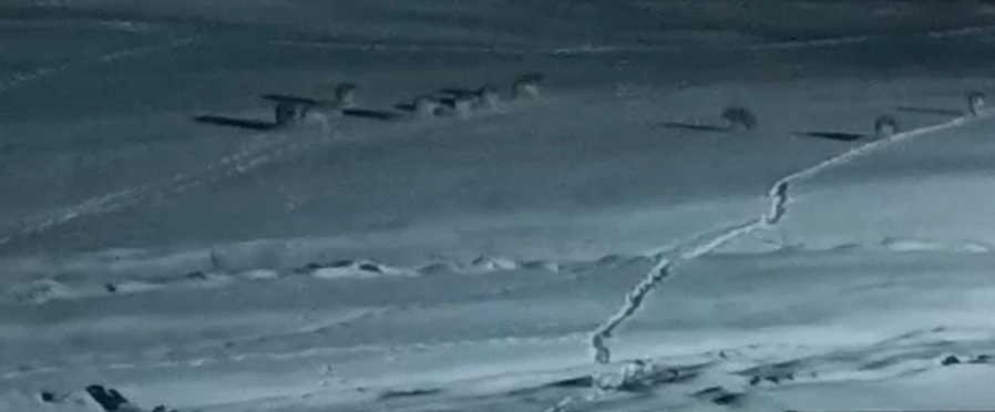 O sırada seyir halinde olan bir kamyon sürücüsü karşılaştığı kurt sürüsünü cep telefonu kamerasıyla kayda aldı. Görüntülerde, karlı alanda iki grup halinde yürüyen kurt sürüsünün dağlık alana doğru gittiği görülüyor.