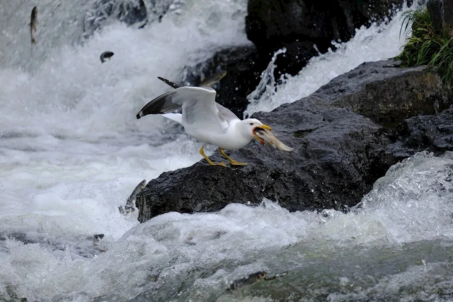 Yolculukları anında engelli noktaları zıplayarak aştığı için "uçan balıklar" olarak da adlandırılan balıkları, bölgede yaşayan martılar, avlayarak besleniyor.