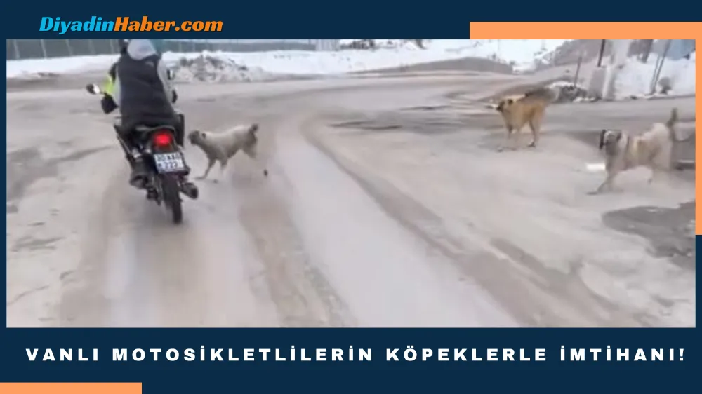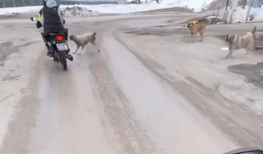 Kontrol noktasından geçen 2 motosiklete saldıran sokak köpekleri kameraya yansıdı.