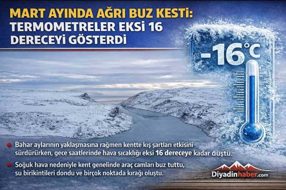 Mart Ayında Ağrı Buz Kesti: Termometreler Eksi 16 Dereceyi Gösterdi.