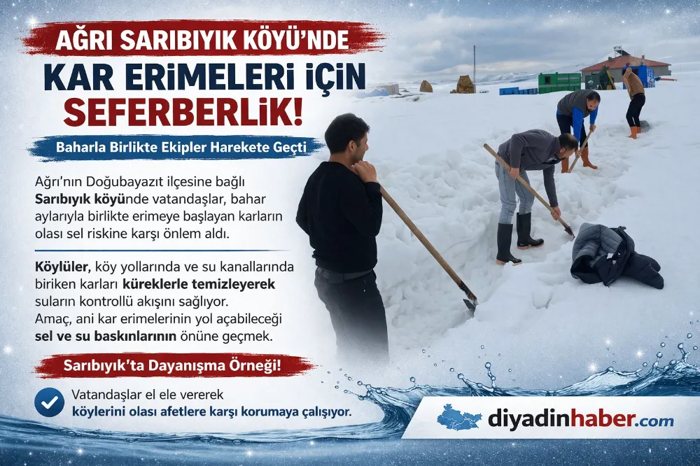 Ağrı Sarıbıyık Köyü’nde Kar Erimelerine Karşı İmece Usulü Önlem