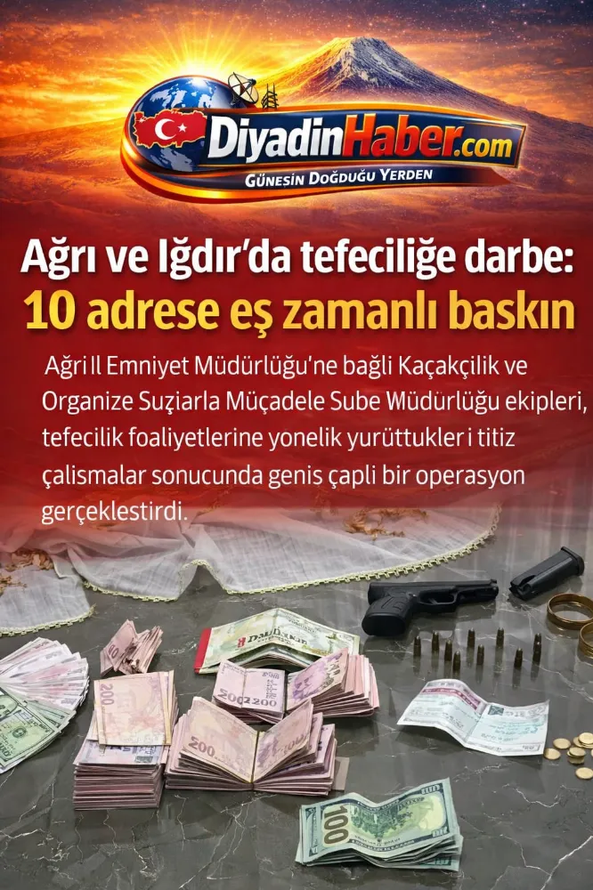 Merkez üssü Doğubayazıt olan operasyonda; ilçede 6 ikamet ve 3 işyeri, Iğdır’da ise 1 ikamet olmak üzere toplam 10 adrese aynı anda baskın düzenlendi.