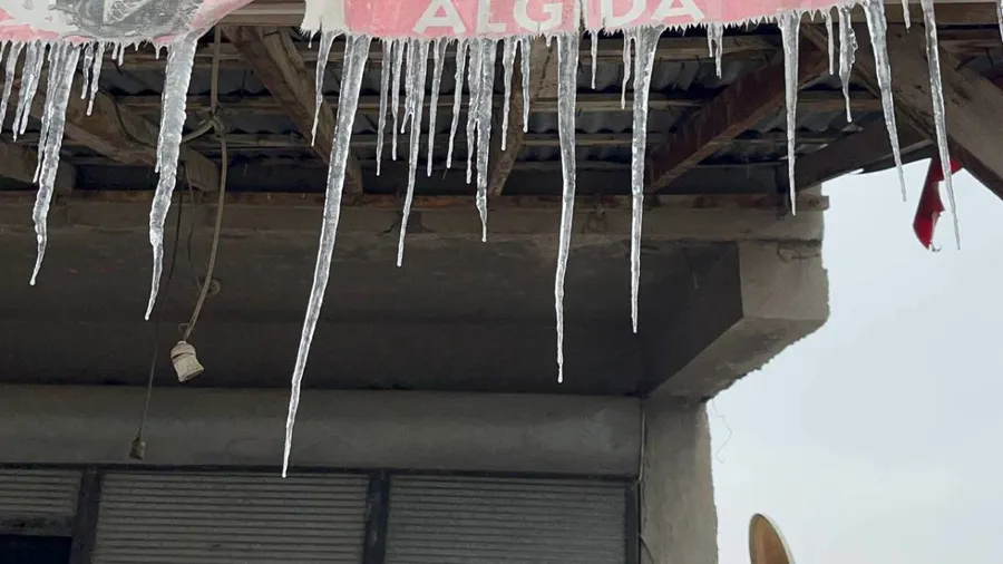 Ağrı’da etkisini artıran soğuk hava nedeniyle birçok evin çatısında buz sarkıtları oluştu.