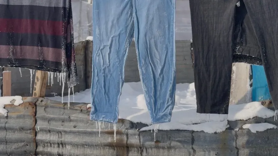 Hava sıcaklığının sıfırın altında eksi derecelere düşmesiyle birlikte açık havada bırakılan eşyalar adeta buz kesti. Bir vatandaşın yıkadıktan sonra ipe astığı kıyafetler kısa sürede donarak kaskatı hale geldi.